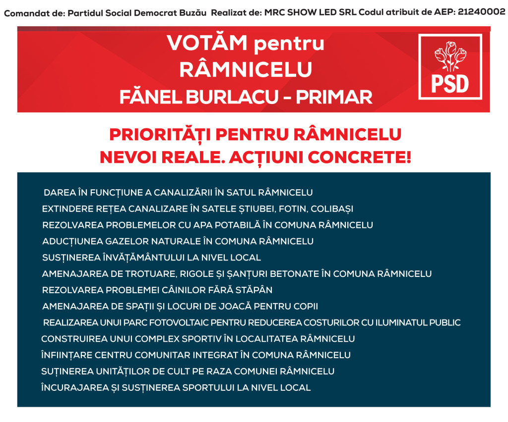 Priorități pentru Râmnicelu: Nevoi reale. Acțiuni concrete.